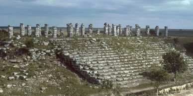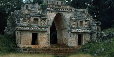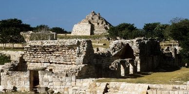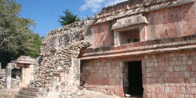 Chacmultun dates to the late Preclassic period. "Chacmultun" means "mounds of red stone" in the Maya language, the site got this name from the distinct red color of the buildings there. It is located 126 km from Merida.