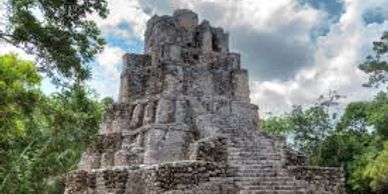 Chacchoben was settled by the Maya about 200 BC. Structures date from 700 AD. It is characterised by large temples and massive platform groups.