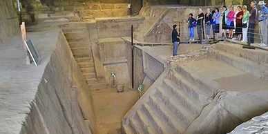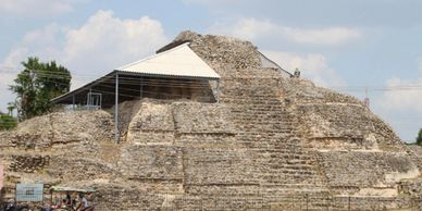 The most famous structure is the Temple of the Seven Dolls, so named because of seven small effigies found at the site when the temple was discovered under the ruins of a later temple pyramid by archaeologists.